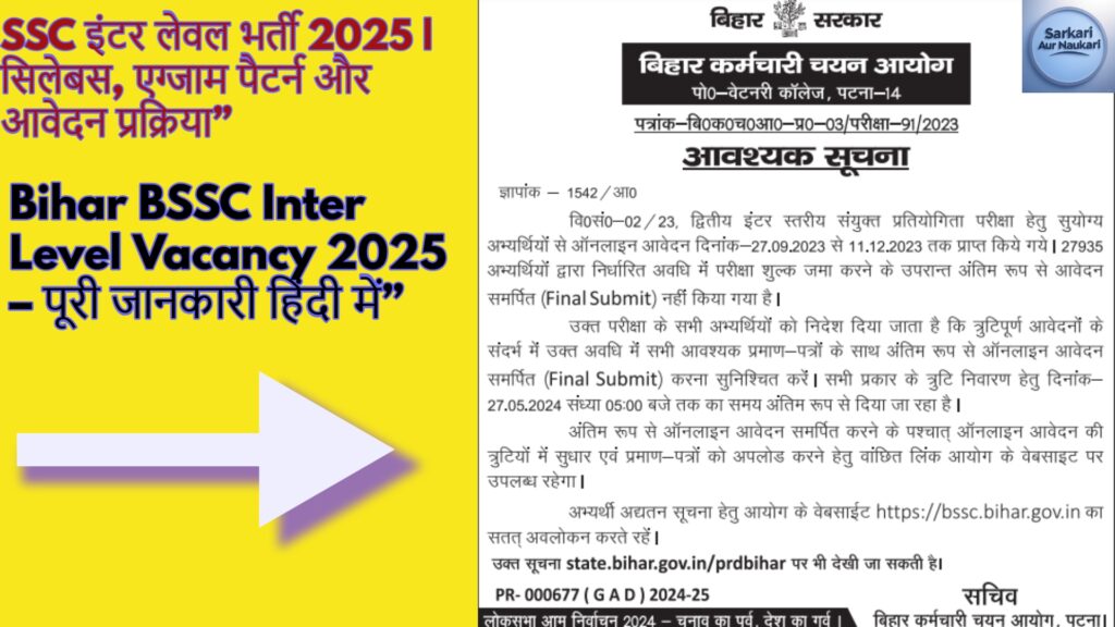 बिहार BSSC इंटर लेवल भर्ती 2025: पूरी जानकारी