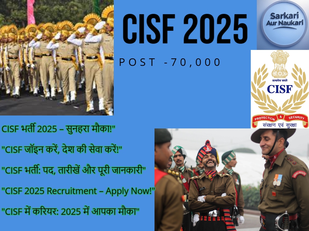 क्या आपके अंदर देश की सेवा करने का जुनून है? क्या आप एक सम्मानित, चुनौतीपूर्ण और सुरक्षित करियर चाहते हैं? अगर हां, तो CISF (केंद्रीय औद्योगिक सुरक्षा बल) की 2025 भर्ती आपके लिए बेहतरीन मौका है। इस प्रमुख अर्धसैनिक बल में शामिल होकर आप देश की सुरक्षा में योगदान देंगे और साथ ही अपने लिए एक स्थिर और गर्व से भरा भविष्य बनाएंगे।”