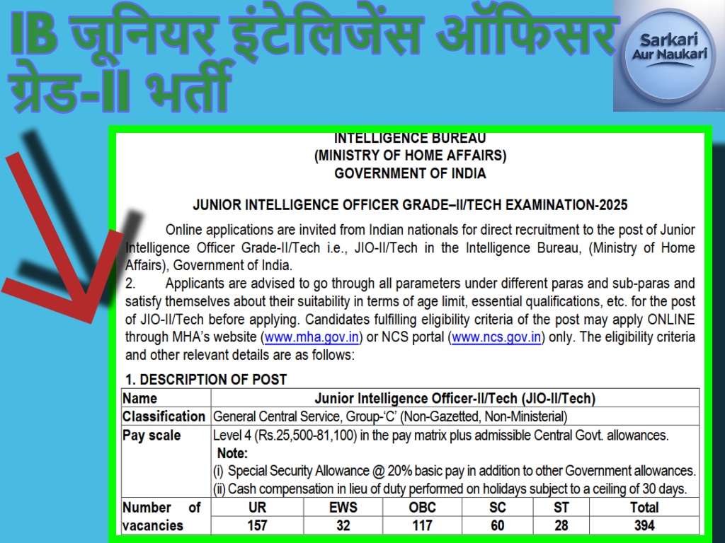 IB जूनियर इंटेलिजेंस ऑफिसर ग्रेड-II भर्ती 2025:नोटिफिकेशन, योग्यता, ऑनलाइन फॉर्म और परीक्षा तिथि