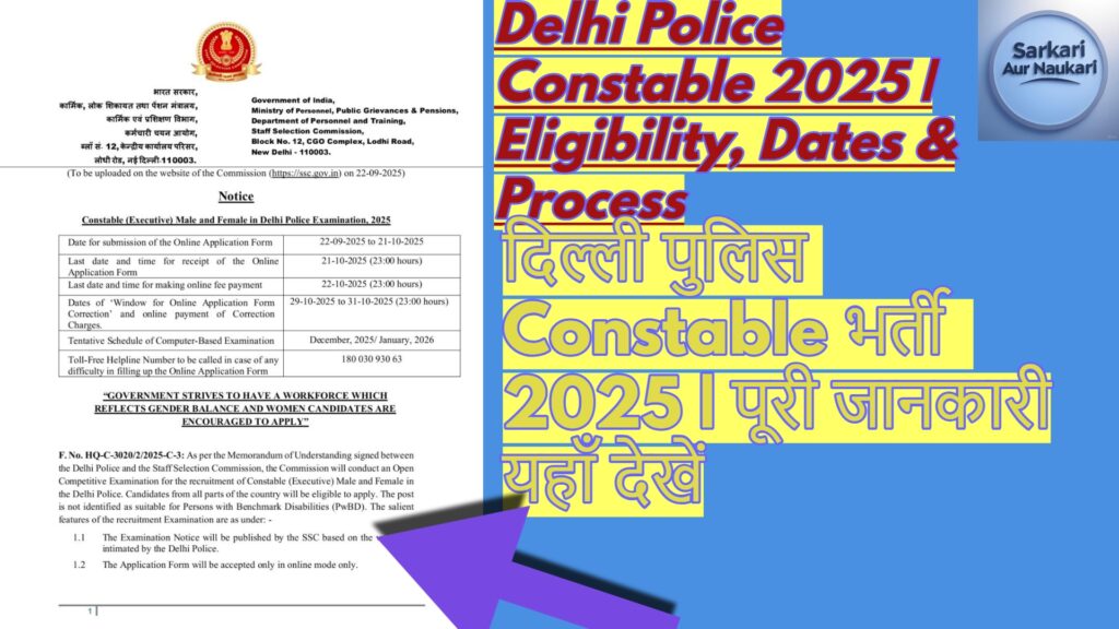 • आयोजक प्राधिकरण: Staff Selection Commission (SSC) द्वारा दिल्ली पुलिस के लिए।